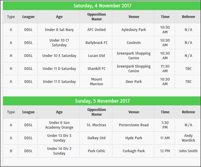 Fixtures Nov 3rd 2017 to Nov 10th