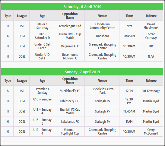 BRCFC FIXTURES FOR THE WEEK 5 and 6th April 2019