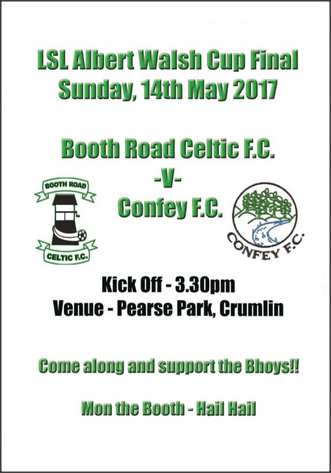 Our Sunday LSL team will play the Final of the Albert Walsh Cup v Confey F.C. in Pearse Park, Crumlin this Sunday the 14th, Kick Off @ 3.30.